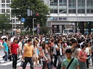 It was the front of Shibuya Station that is the cause of my daughter’s consternation and awe. The crossing is actually what’s called a “scramble crossing” – mainly because traffic is stopped by traffic lights in all directions, allowing pedestrians complete access to the street for several minutes before the traffic begins again. The crowd of people streams magically into the street, flowing and flowing and flowing until it seems like there’s no way to staunch the raucous drip. But then the light changes and instantly, the sidewalks dam the teeming masses.