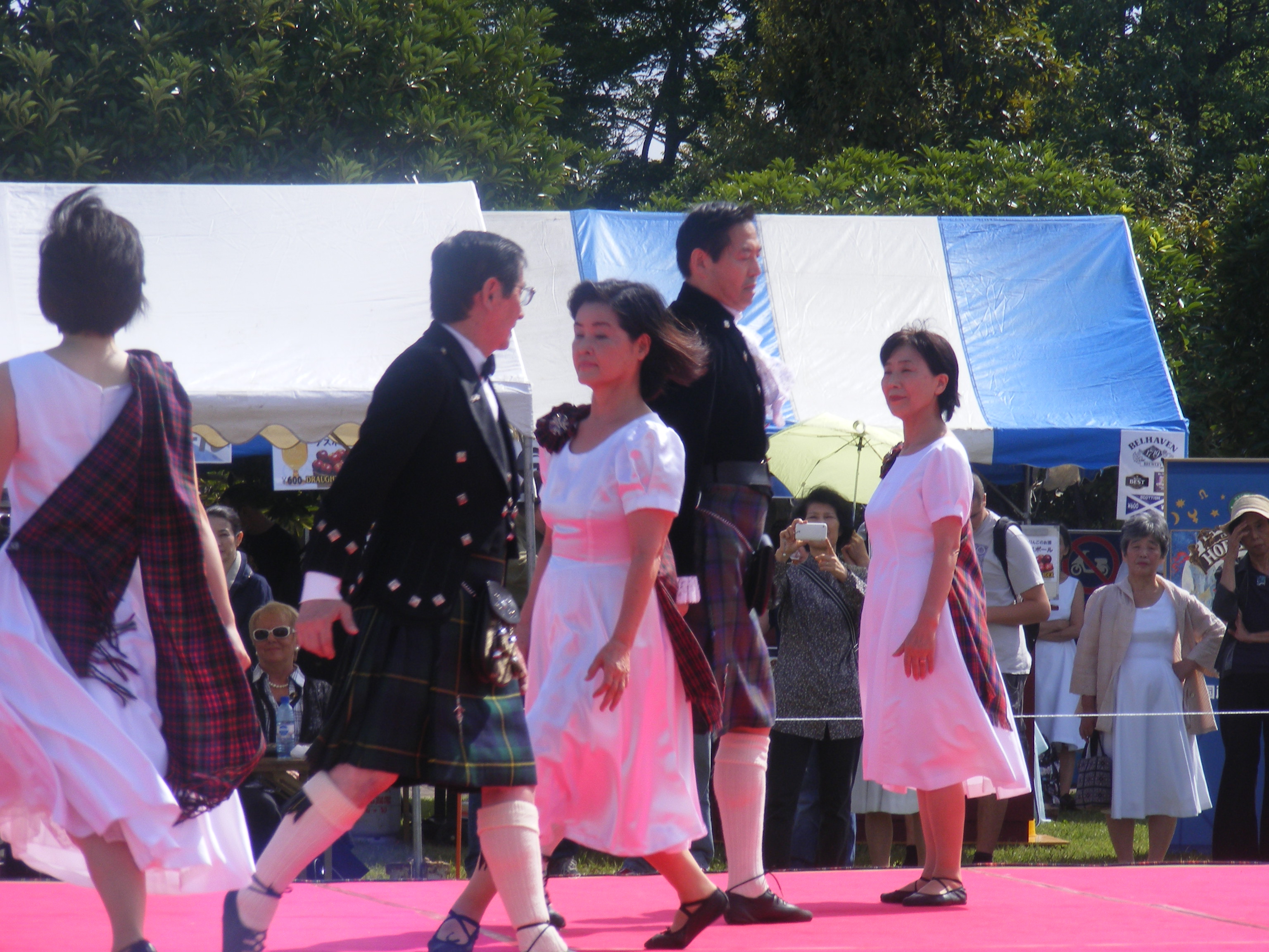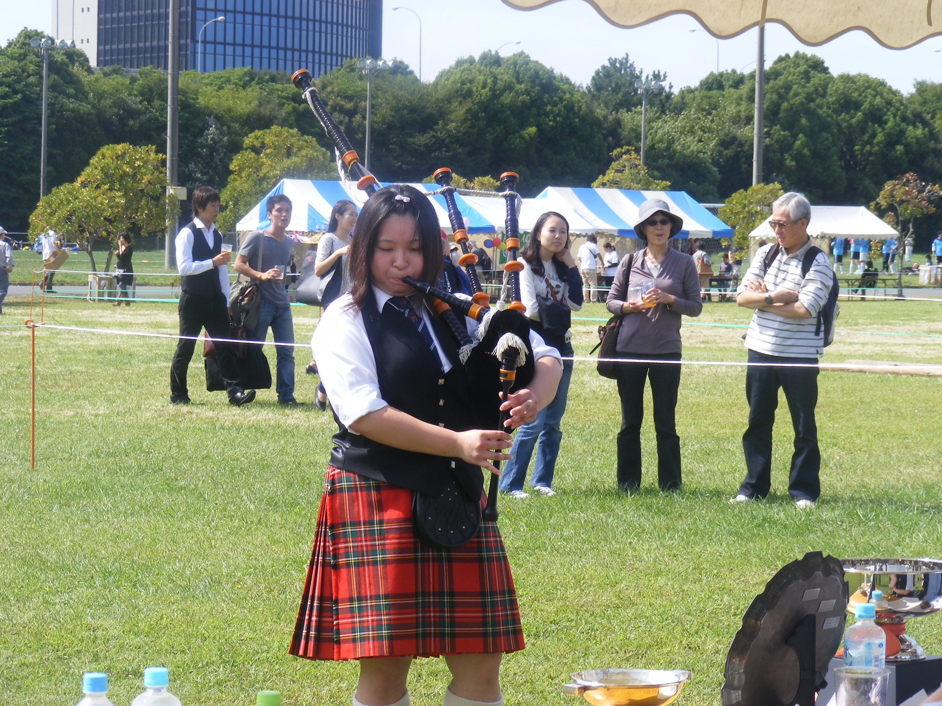 This past weekend our family went to the Highland Games held in Chiba, about an hour outside of Tokyo. This is the 27th annual games where the Japanese can experience a bit of Scotland in Tokyo. The festival includes traditional food such as haggis (sheep guts) and of course, fantastic Scotch Whisky. There are sack races and egg and spoon races for the kids, as well as jousting and heavy-throwing/lifting games for the adults. The bag pipe playing goes on all day, as does the traditional Scottish dancing. It’s truly a sight to behold – Japanese men dressed in kilts, dancing.
