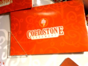 This weekend, we took the kids to Cold Stone Creamery in Roppongi Hills, about a 10-minute walk from our house in Azabu Juban. Even though it’s been there for quite some time now – about four years at least – we had never taken the kids. There are so many things that are familiar with it, including the logo, the “like-it” and “love-it” sizing, and the blending in of toppings into the ice cream. But there are also unfamiliar things that make it uniquely Japanese: the creations are different and they do not have all of the same ice-cream flavors as in the U.S. Though they have the regular cakes available, the cakes are different too – more in the form of a jelly roll with ice cream in it. I will say, the funniest and best part of any Cold Stone experience is the singing. Of course, in the U.S. the servers sing when someone leaves a