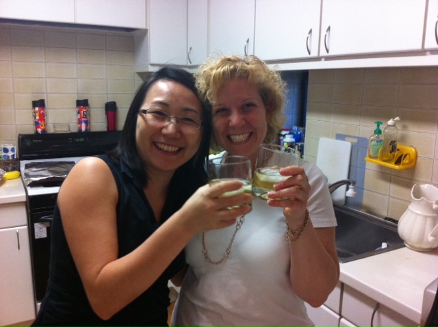 This past Sunday was the long-awaited unveiling of the umeshu (plum wine) that my good friend, Saori, and I put together back in June. We had been storing it in a cool, dry place (as cool as we could get in sweltering Tokyo) for at least two months. When we took it out, it was a beautiful golden color with the plums swirling and beckoning within. When we poured it out of the mundane container, it sloshed lightly in the glass, catching the glint of the light. Both Saori and I like it over ice, so the cubes clinked against each other to welcome the liquid.