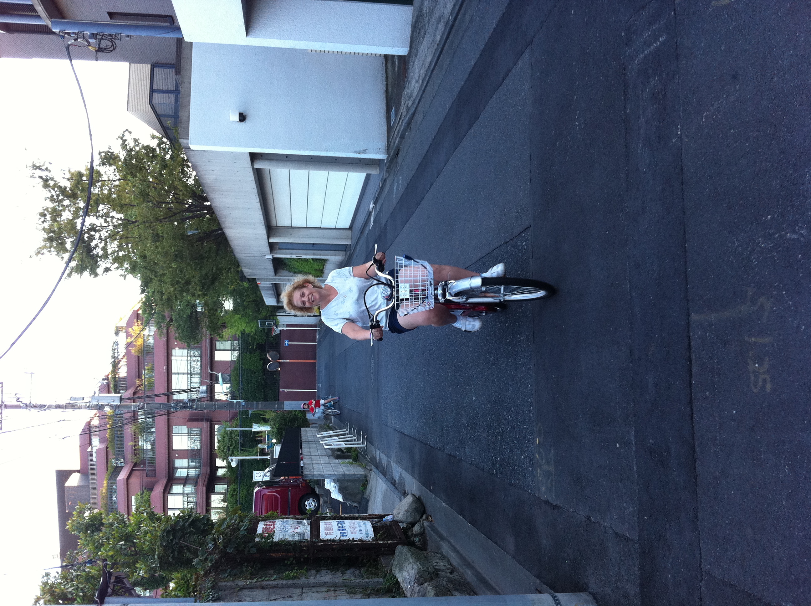 I have to admit that I have a funny habit when cycling – I talk to myself. Out loud. The running commentary goes something like, “Okay, made that turn. I wonder if that schoolgirl is going to move for me. Do you think she can see me? She’s only staring directly at me walking in the middle of the sidewalk. Aack, old lady in front of me – I have to avoid her. Wait, is she moving left or right? Maybe I should ride on the road. Oh man, is that a taxi coming up behind me…” And so it goes on. It’s a weird, little habit and I sort of bank on the fact that the Japanese don’t understand my English. It sort of helps me understand and correct and keep on the route.