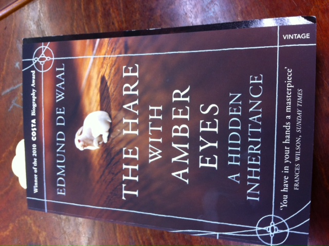This month’s book club selection is The Hare With The Amber Eyes. It’s a wonderful piece of nonfiction by British author Edmund De Waal, who inherited a large collection of netsuke (small, carved, Japanese curiosities) from a great uncle. He traces the netsuke from their initial purchase in the late 18th century and then through his family line until they come to him. The greatest part of it is that he is from a prominent Jewish family who were involved with Renoir, Proust and the like in 19th century Paris, and then the Hapsburgs in early 20th century Vienna. The author, who is also a sculptor in his real life, paints the landscapes of upper class Europe with broad strokes and meticulous attention to detail. The interiors of the homes and the luminous cityscapes come alive almost as characters in the narrative. I am almost halfway through the book, and I can say with certitude that I’ve never been able to “see” a scene as well as De Waal helps me to do. It really is as if he is painting with words. I can’t tell you if the book ends well, or what happens to the family – or the netsuke – during the wars in Europe (yet) but I can tell you that it’s a beautifully written book.
