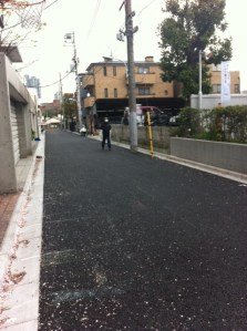 Is there a song with those lyrics?? Tokyo is one of the most populous cities in the entire world, and our family lives right in the center of it, within walking-minutes of the most popular attractions. However, another attractive thing about Tokyo is its quiet-ness. Our street is quiet. Our kids regularly play outside in the street with the neighbors. Here are a few photos of the house (with a random Japanese guy near it…), the basketball hoop that we share with the neighbors at the end of the street, and then a picture of some chalk drawings that Sydney and her girlfriends did on the street as they played, but they are partially covered by cherry blossoms from the