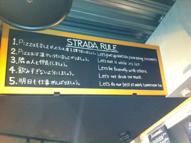 specific. And then look at the rules – only in Japan could a joint post rules like that and expect them to be followed. Almost anywhere else, they’d be laughed at – really – let’s not drink too much?? Who ever heard of pizza without a few beers? Well, perhaps my twelve-year-old, but he’ll learn in time. Enjoy!