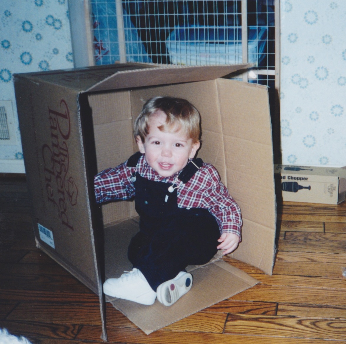 This is a photo of the Baby of my Heart, as I have always called Bailey, at age one, nearly twelve years ago. He loved boxes and would squeal with delight if he saw the UPS guy in our driveway. It never mattered what the boxes contained; the boxes were the fun part. As you can see, most often Bailey himself ended up in the box.