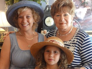 My son prepared for his bar mitzvah. More on THAT later!Beaches, seashells, and surfing, oh my!My husband and my son did not injure each other as their surfboards nearly collided!Last stop, Florida, for the bar mitzvah, my parents and my in-laws. Here we are with my mother-in-law at Lady Ann’s Tea Room in Jupiter, Florida. Hats are part of the meal!