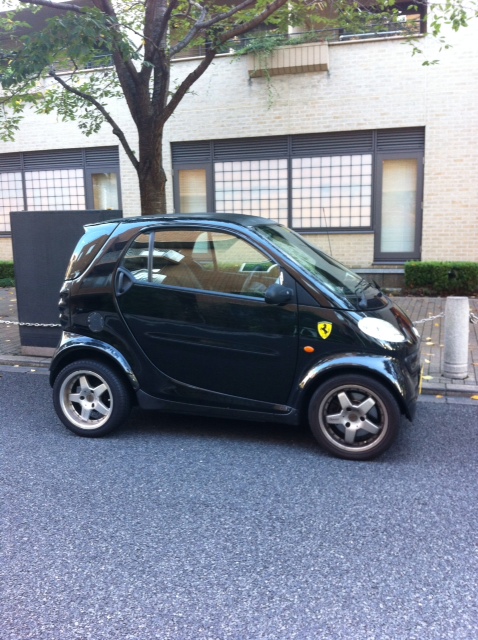 When my husband first saw this photo, he thought it was just a regular Smart Car with a Ferrari sticker on it. But oh ye of little faith, I checked in with my “friend” Google and found out that yes, Ferrari has been making a smart car. At first it was just Ferrari designers working for Smart Car, but then the company, in 2008 or thereabouts, starting their own line of them. Here’s a link to a Ferrari dealership in the US that carries the car, Dessert Motors. I went on Smart Car Owner fora and also looked at some interesting design options for the car. Tokyo is a car-lover’s dream – you can find every conceivable type of car around here, from a tiny Toyota to a huge Hummer. Japanese people love new cars, but most of them are pretty practical, and the city exists mostly on the infrastructure of the public transport. But still, it’s fun to see what people drive around every day, and every now and then, you find something astounding. Enjoy!