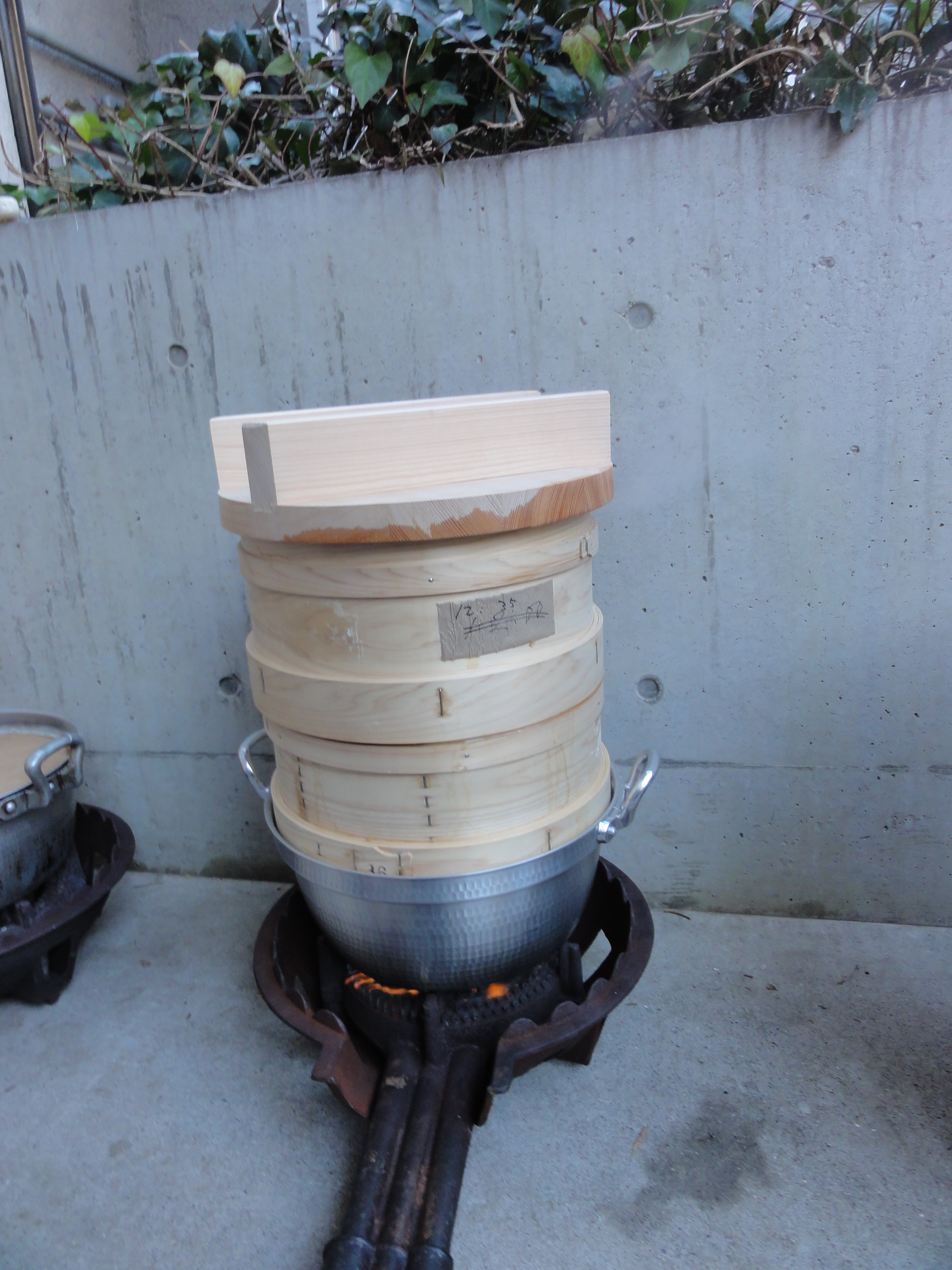 The preparation really began the day before with all of the rental equipment arriving and the washing and soaking of all the rice. Every last grain has to be cleaned and soaked overnight. The rental equipment included some stove-like items that boil the water to steam the rice the old-fashioned way. NO electric rice making in this operation!